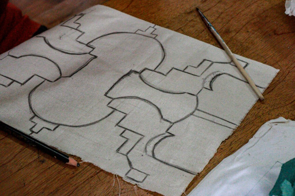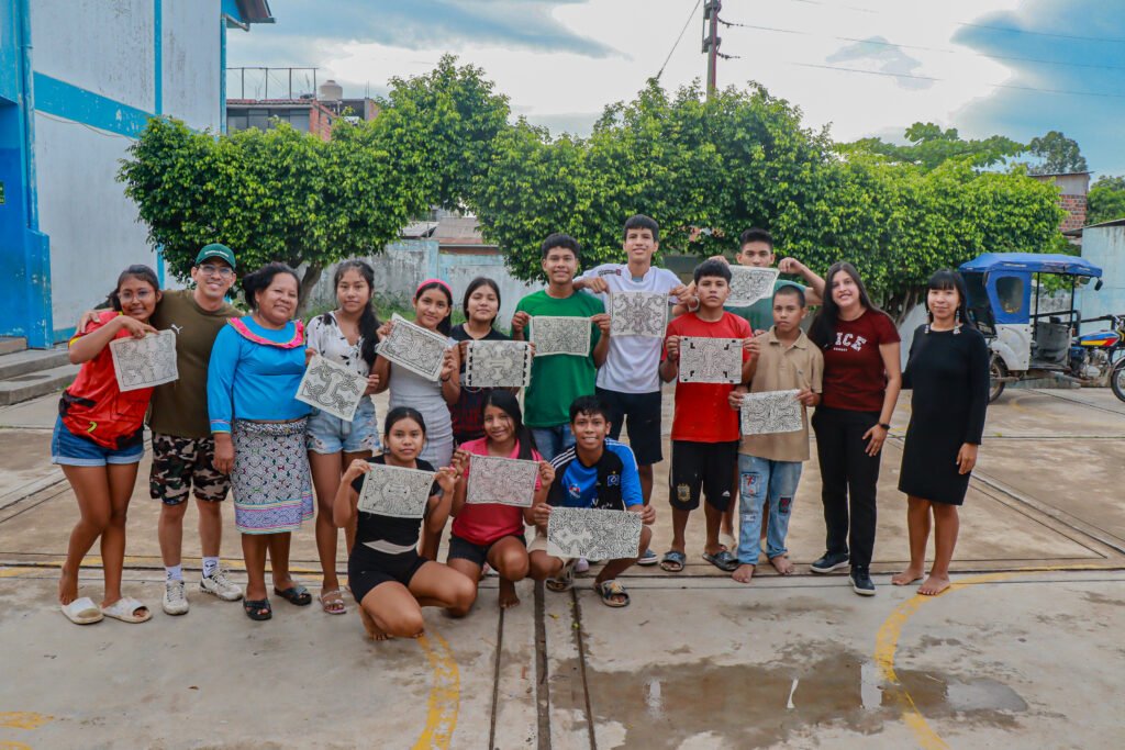 El laboratorio incluyó también un taller dirigido por mujeres artesanas, quienes compartieron conocimientos sobre el kené, un diseño ancestral de profundo valor cultural. Los participantes pintaron sobre tela tocuyo, integrando tradición y creatividad contemporánea, lo que enriqueció su comprensión del territorio y su simbolismo.